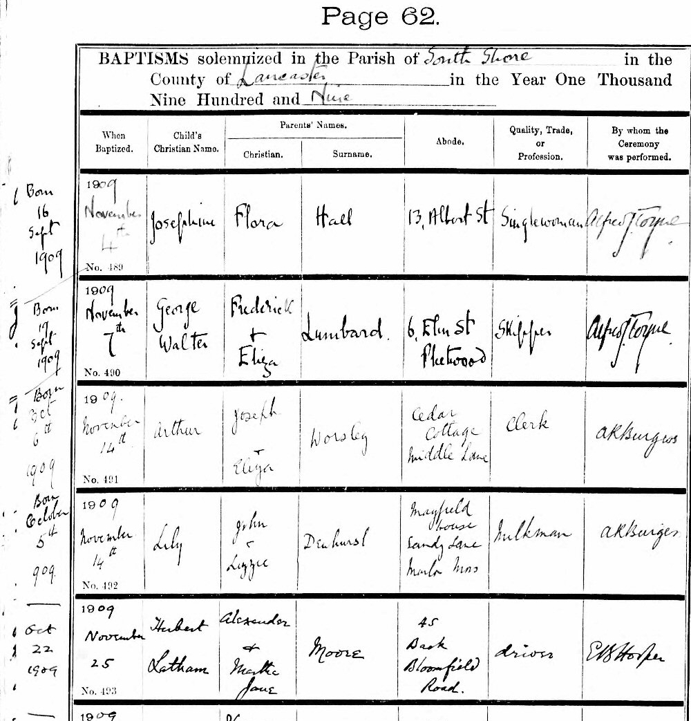 Baptism 18 Dec 1881 at St John the Evangelist church, Blackpool.
